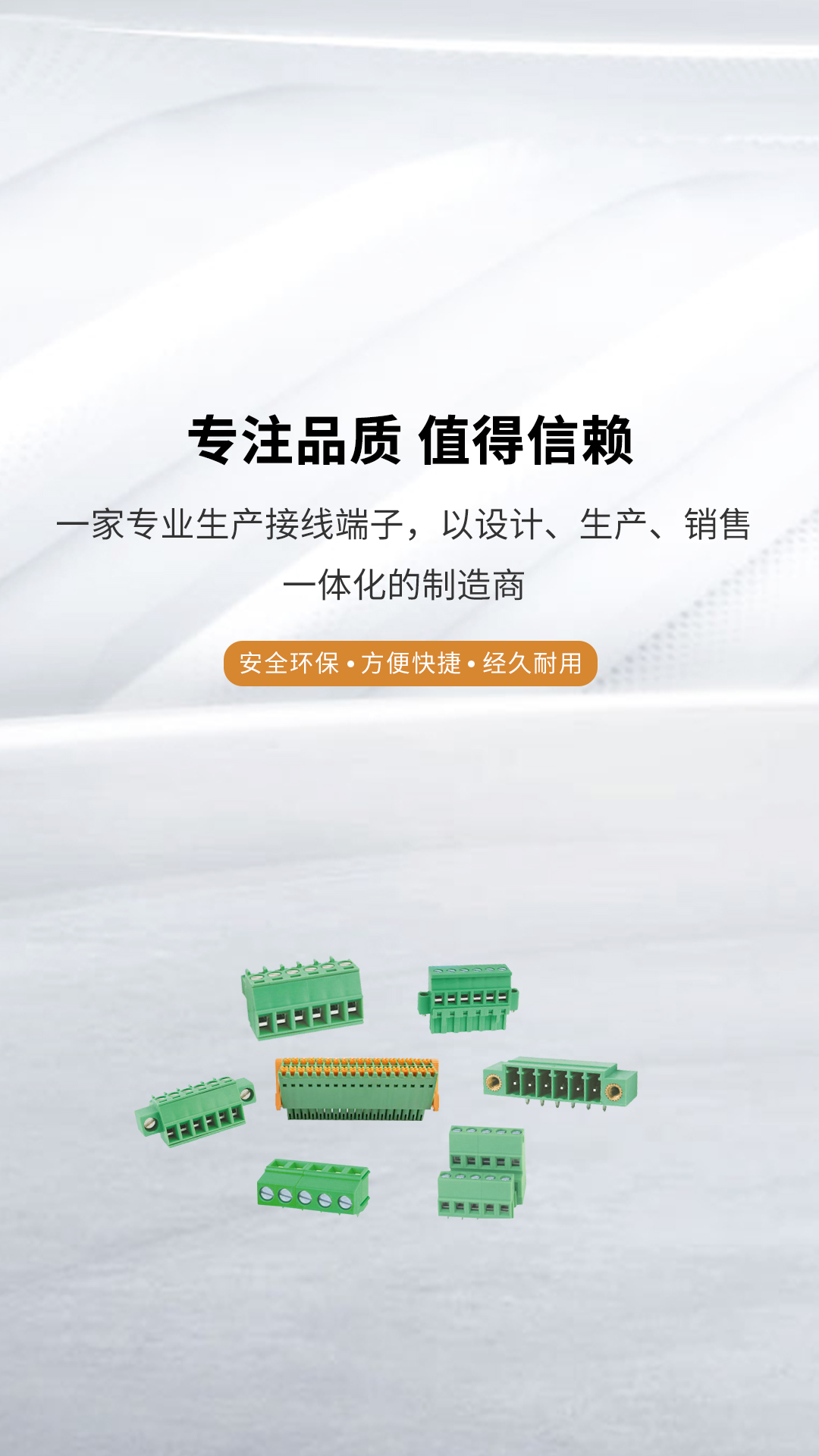 公司主要經(jīng)營(yíng)的產(chǎn)品包括PCB接線(xiàn)端子,柵欄式接線(xiàn)端子,插拔式接線(xiàn)端子,免螺絲接線(xiàn)端子等電子元件,廣泛應(yīng)用于儀器儀表、報(bào)警器、照明、電梯控制器、通訊及配電箱,高壓設(shè)備等領(lǐng)域。